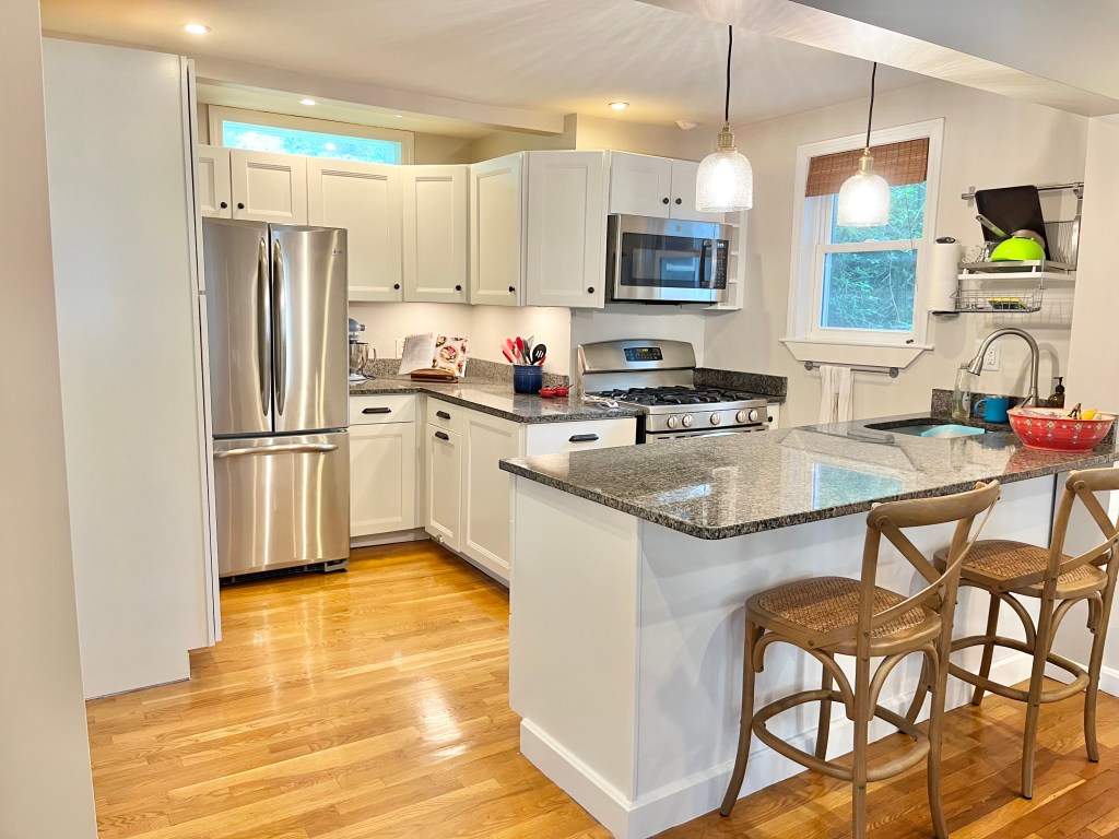 One day down the road, I’d love to replace our countertops with Danby marble (Martha Stewart’s preferred stone, apparently) and get a zellige-inspired subway tile backsplash like this or this. For now however, the white paint, new pendant lights, new hardware, and under cabinet lighting made a world of a difference, and I’m more than content with this “kitchen facelift” for many years to come.
