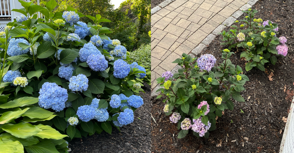 Our house already had a few established hydrangea plants, such as the one pictured on the left, when we moved in. This spring we added two Endless Summer Bloomstruck Hydrangeas (picture on the right) and hope to add one or two more this fall. They’re still young, but they seem to be doing pretty well so far! I also really like the white ones.