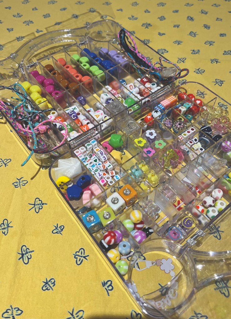 I saw Joanna Goddard post about attending a jewelry making party with her girlfriends and thought, this is exactly the vibe I want to cultivate! I want to be the type of person who has craft parties with her girlfriends, and the best way to make that happen is to host a craft night myself. And then I saw Julia Berolzheimer post about these bag charm kits she bought for her daughters and I knew I had identified my “activity.”