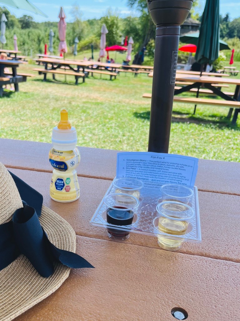 - Peach Picking and Wine Sipping at Nashoba Valley Winery. We went on a gorgeous 70-degree Monday in late August. On a weekday, it wasn’t busy at all. The peaches we picked were SO delicious. As with berry picking, we kept baby snug and secure in the UppaBaby with the sunshade on and the mosquito net. After peach picking, we had lunch and a wine tasting flight at one of the outdoor picnic tables overlooking the property. If I am being brutally honest I probably would not come here for the food and wine alone — there are plenty of restaurants with better food, great wine lists and outdoor dining closer to Boston. But if you are looking for a spot to go peach picking, the winery element definitely puts this orchard over the top and makes the drive feel worth it. We hope to make this an annual tradition! Baby age: 9 weeks. Gear MVP: UppaBaby Vista with Bassinet and Mosquito Net.