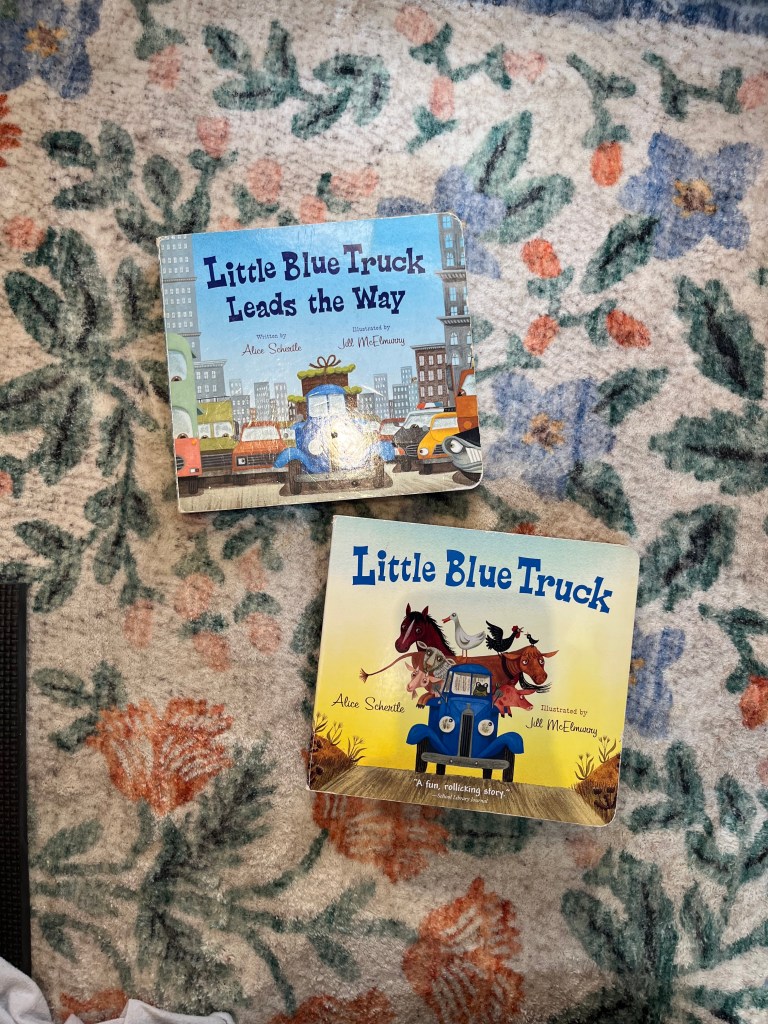 Baby LOVES these Little Blue Truck books. There are others in the Little Blue Truck series but these two are by far the best. He lights up when we read them.