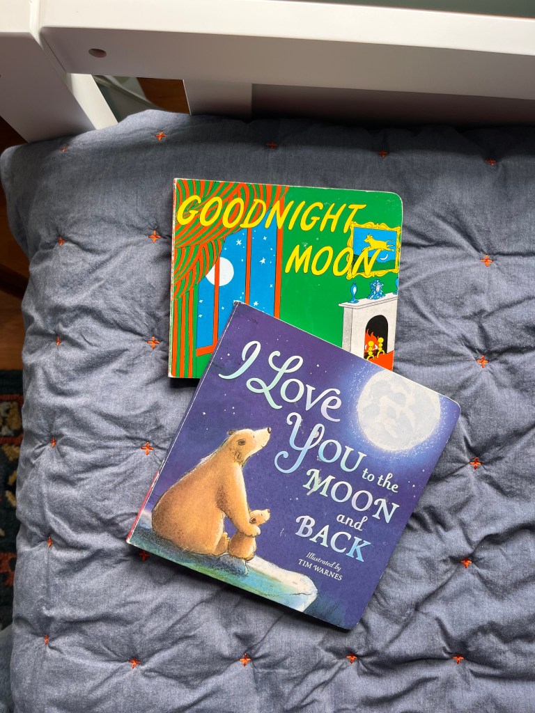 I Love You to the Moon and Back by Amelia Hepburn, Tim Warnes; and Goodnight Moon by Margaret Wise Brown, Clement Hurd
